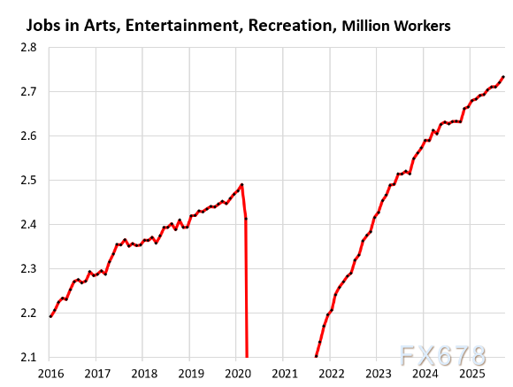 各行业就业分化明显:医疗保健和社会救助、休闲和酒店业等行业持续新增就业且部分创历史新高;专业和商业服务、制造业、信息业等则出现就业下滑;零售业、建筑业等呈现温和增长或小幅波动,不同行业受自动化、电子商务、市场需求等因素影响呈现差异化走势。