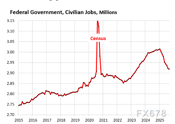 但这一数据尚未包含今年春季约10万名联邦政府文职人员接受的“延迟辞职”协议——他们的薪资发放至9月30日。由于这些人9月仍在薪资名册上,10月1日才正式离职,这部分裁员将反映在下次(11月发布的)非农就业报告中,而原定于10月发布的报告已因政府停摆取消。